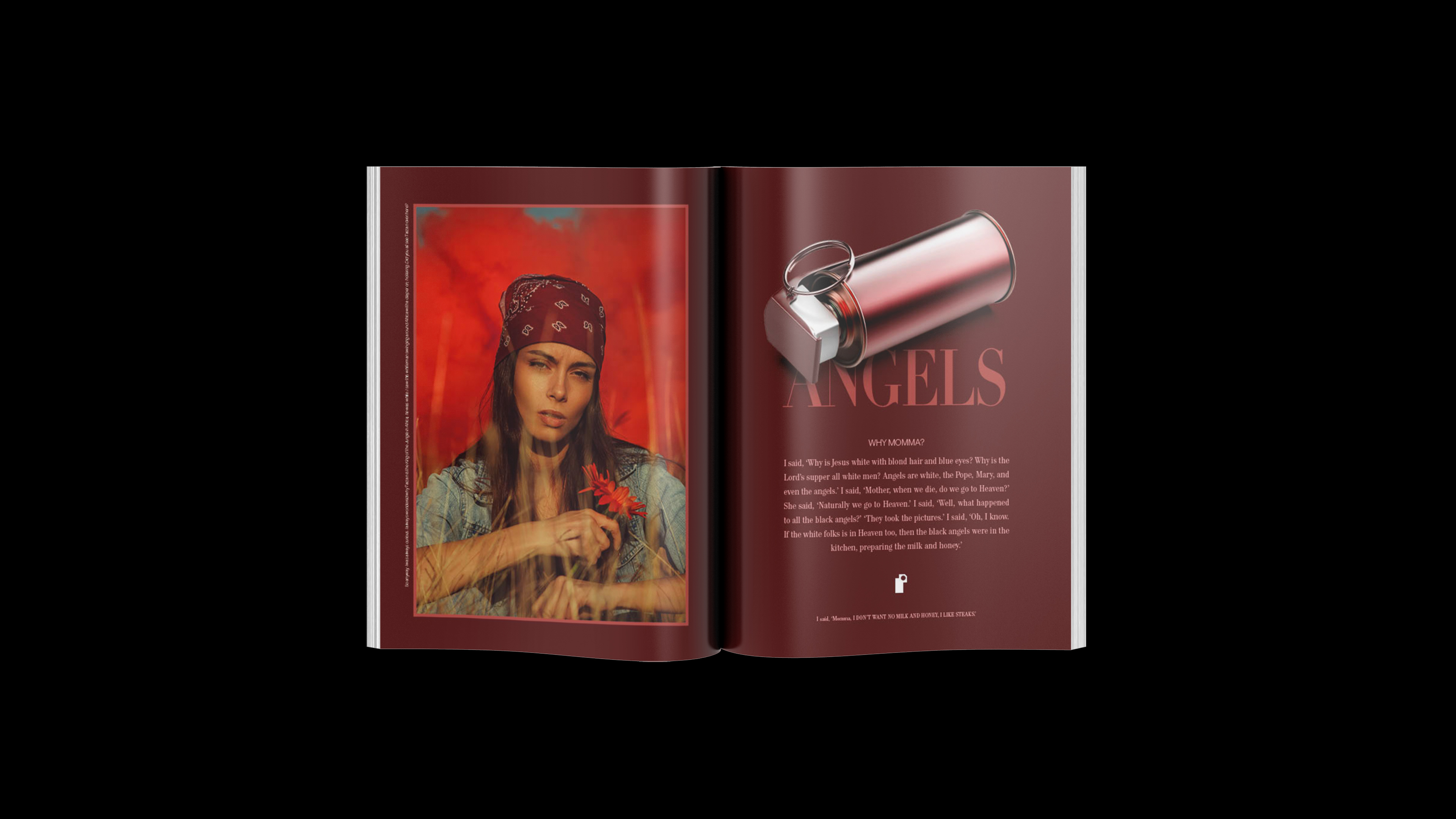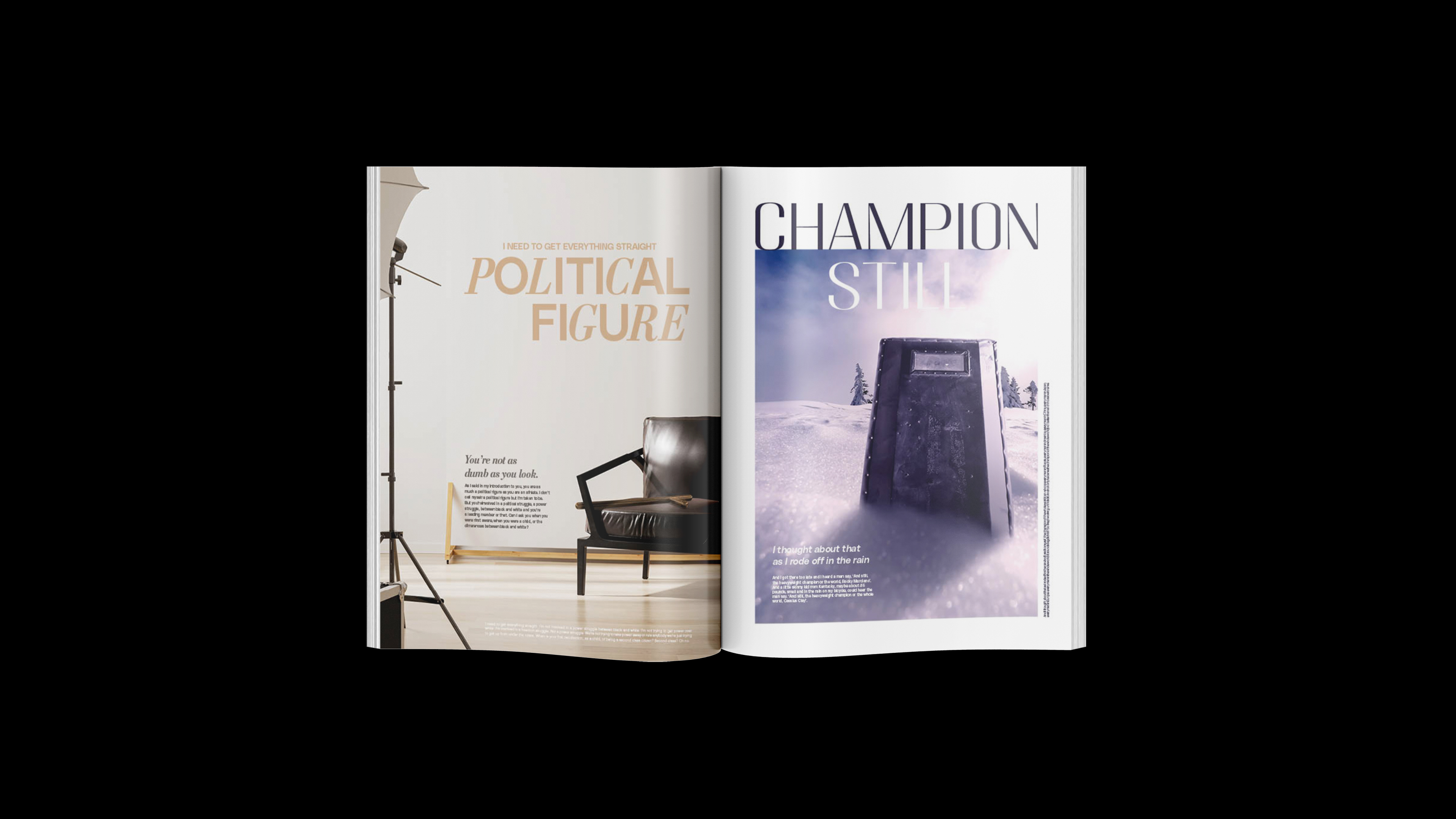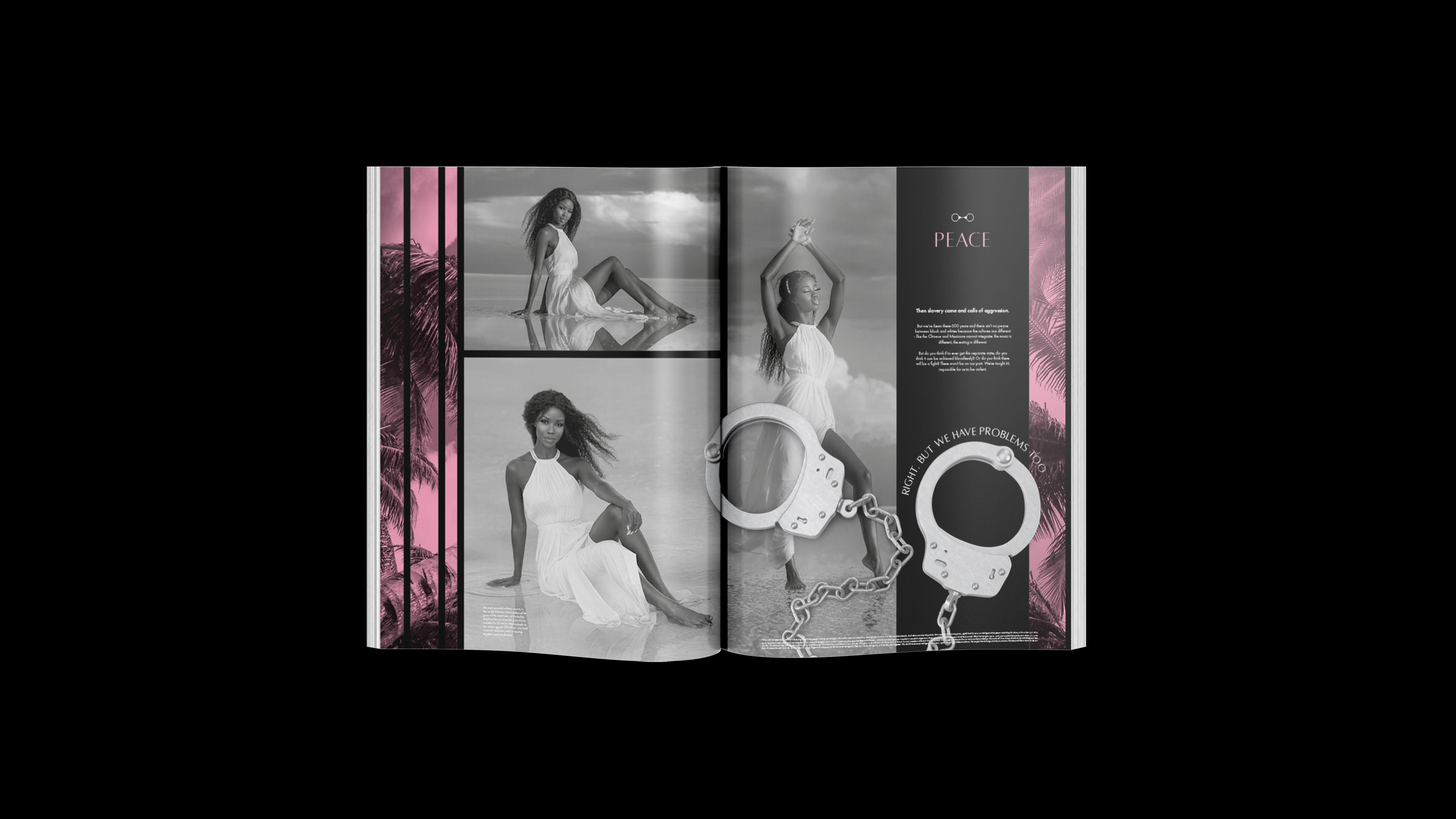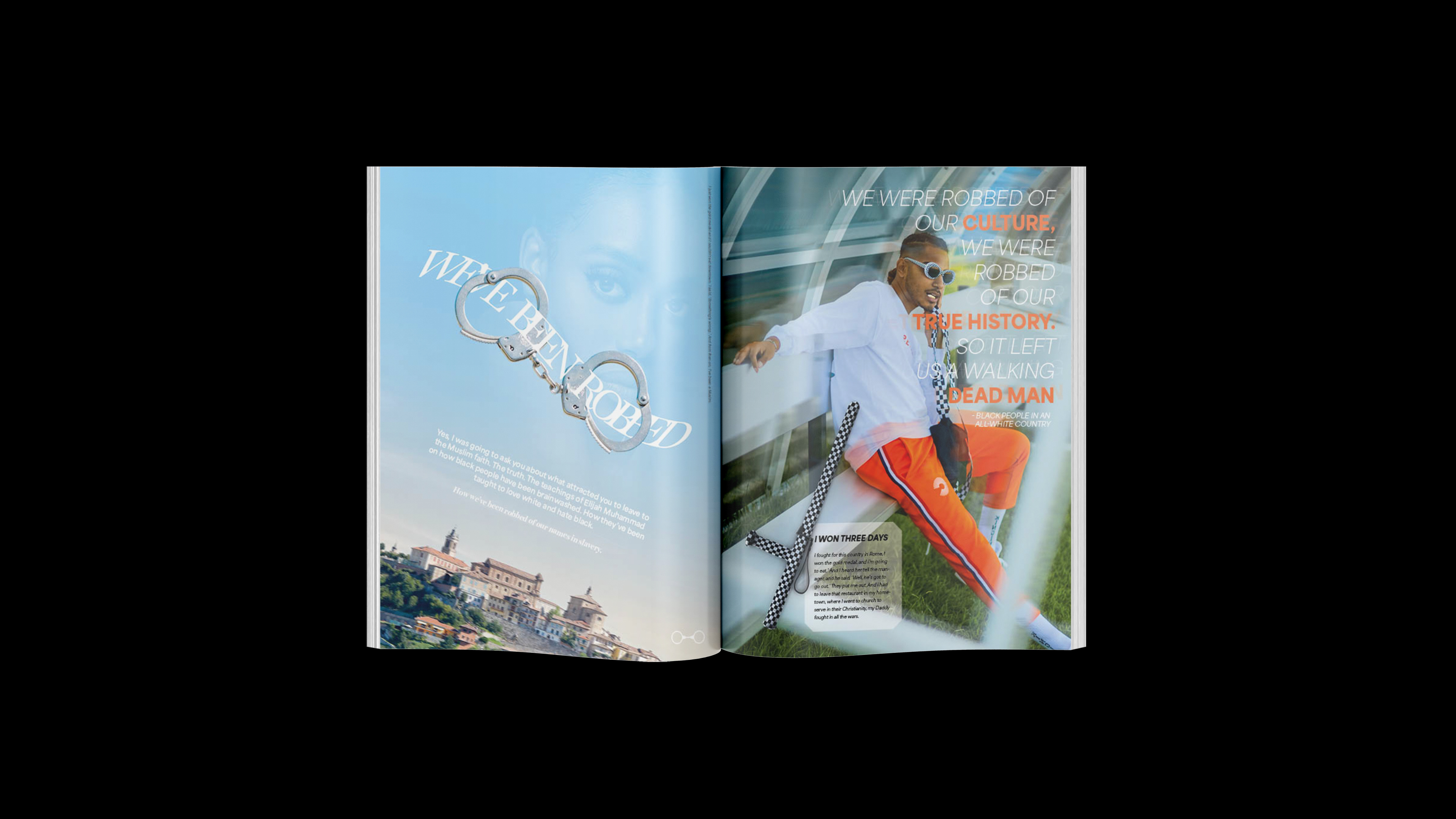 This perspective mimics a high-end magazine, with advertisements subverted to highlight tools of oppression, styled as luxury products. This unexpected twist draws readers in with familiar visuals, only to confront them with the harsh realities of civil rights struggles. It mirrors Ali’s blend of humour and gravity, evoking emotions from shock to empathy, and making the issues he discussed deeply impactful and resonant with his activism.